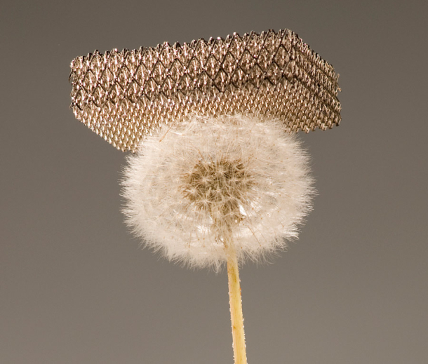Ce matériau essentiellement métallique dispose d’une autre propriété intéressante. Il peut être comprimé jusqu’à 50% de sa taille initiale et retrouver sa première forme une fois la pression terminée.